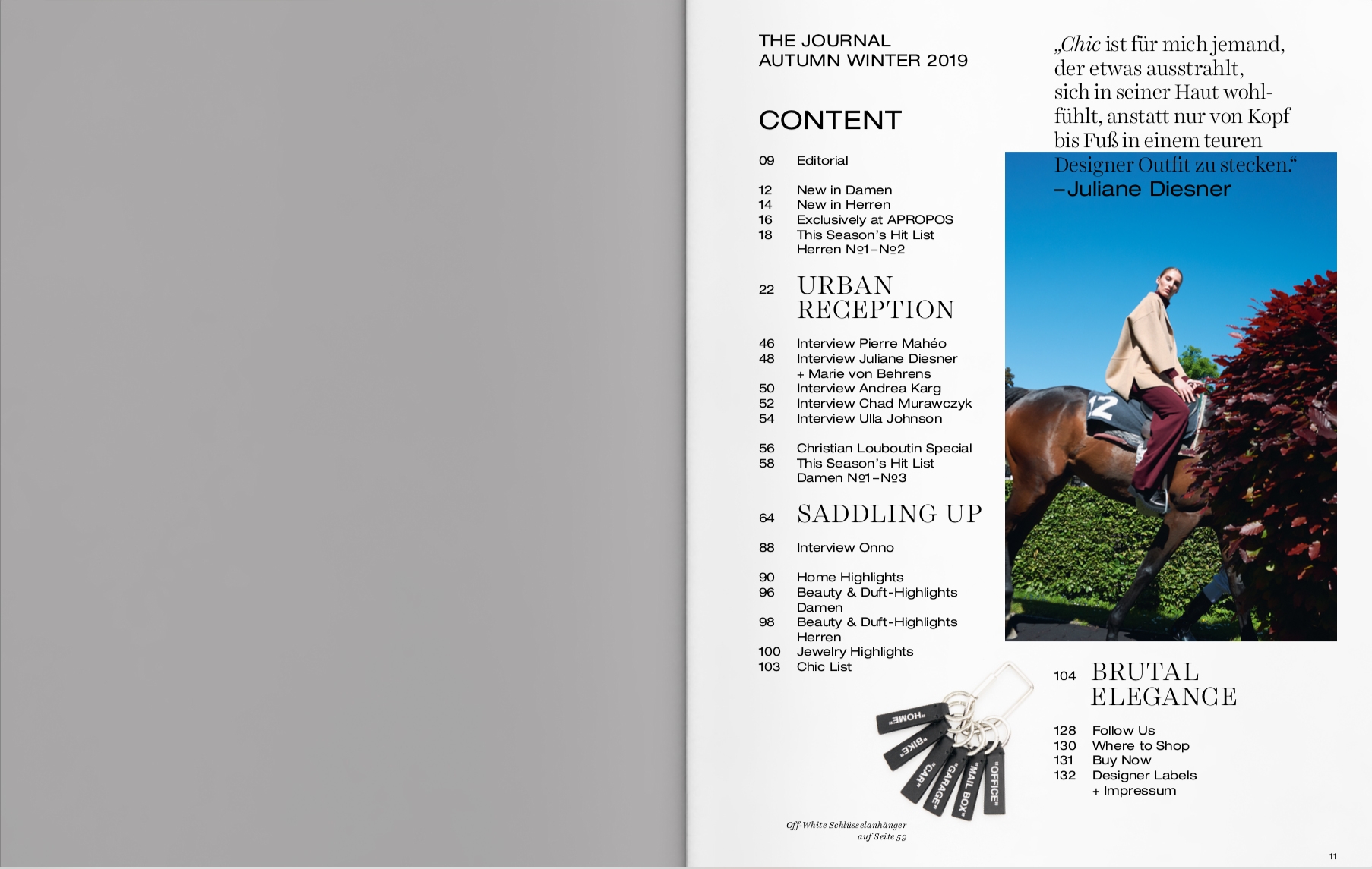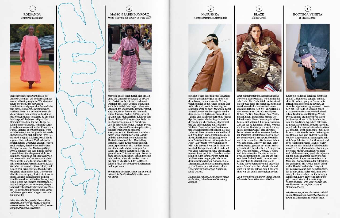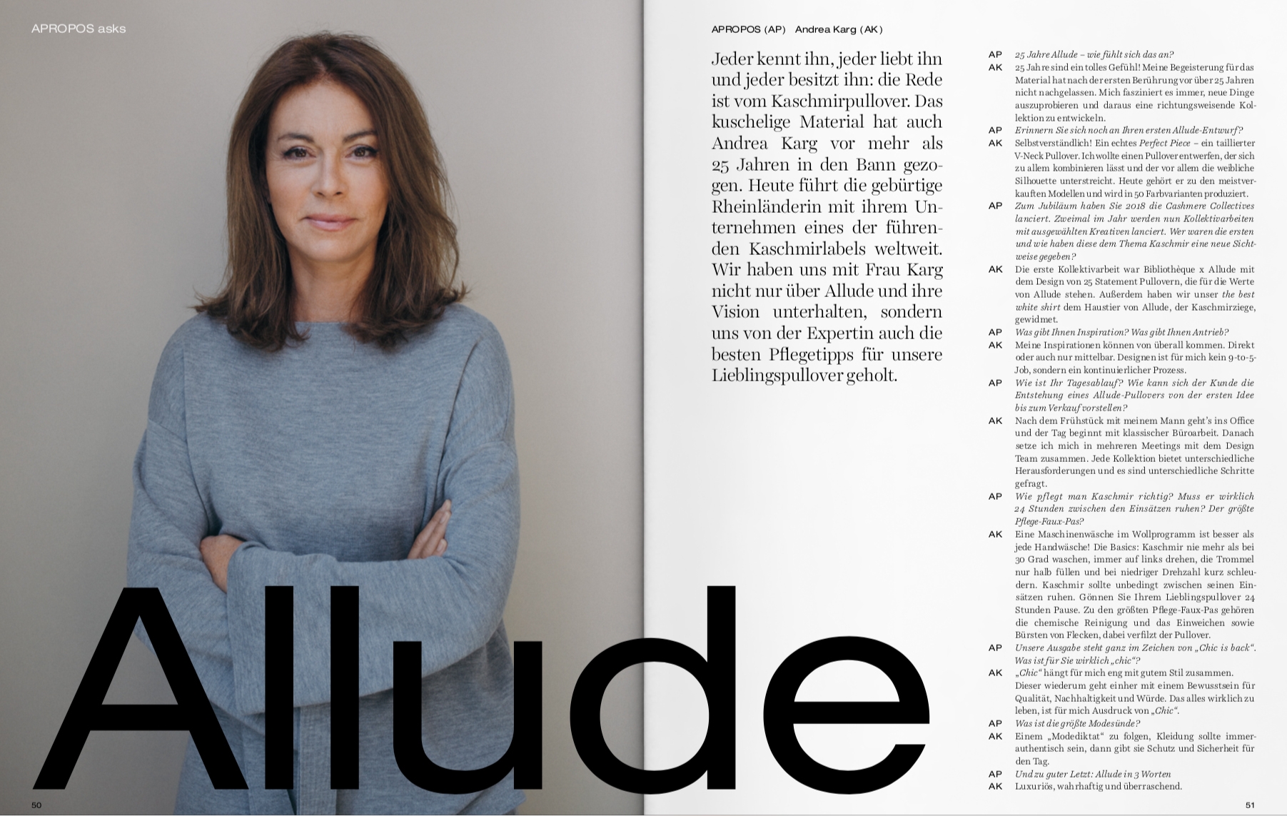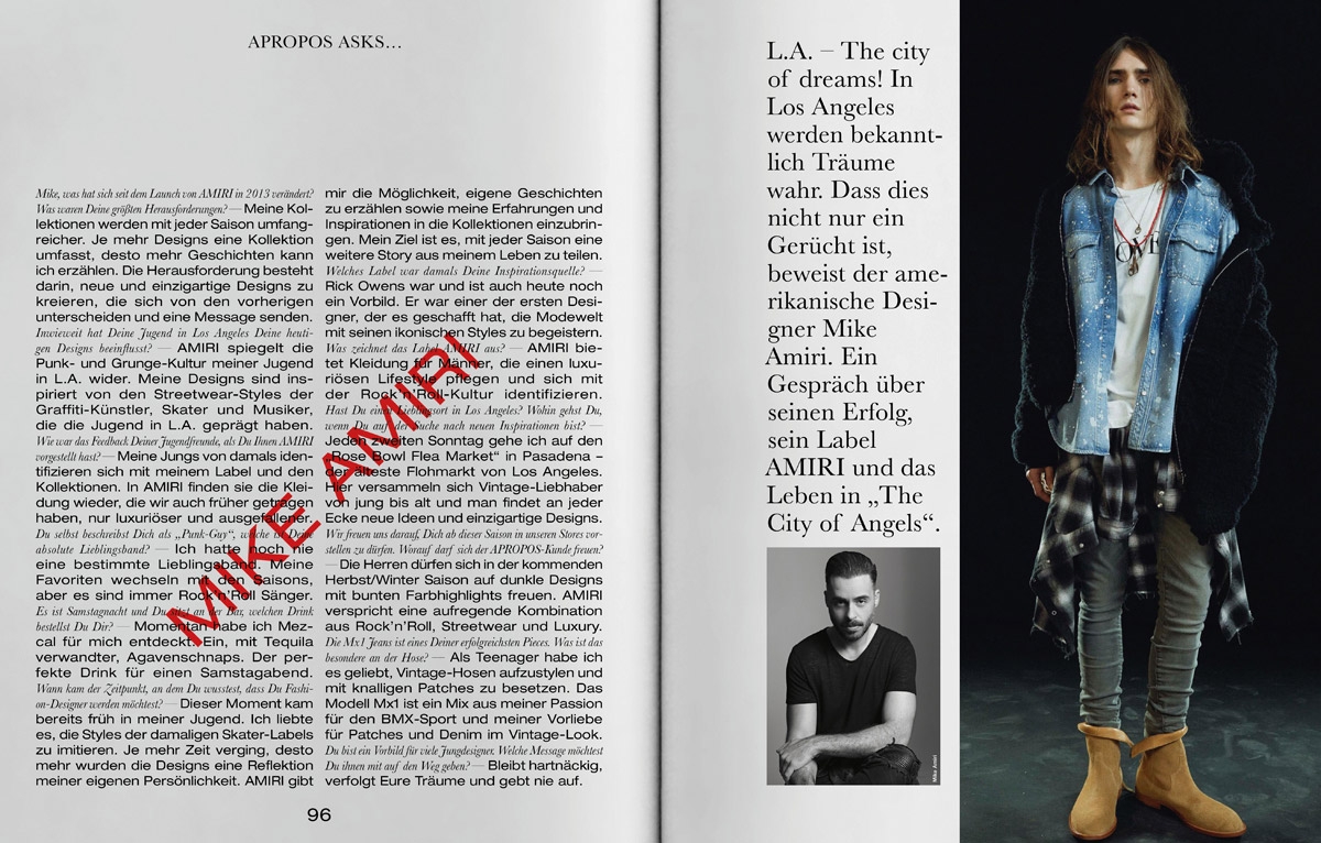 Art Direction, Editorial DesignThe name Apropos stands for leading concept stores in four major German cities. For more than 30 years, the founders Daniel Riedo and Klaus Ritzenhöfer offer a bespoke selection of luxurious and unique items from the realms of fashion to beauty and interior. Biannually they publish a high-quality print magazine that conveys the Apropos style through the seasons, keeping its finger on the pulse of the zeitgeist. Since 2018 they have been in partnership with Studio von Monkiewitsch for their magazine. The magazine is characterized by a curiosity for the novel, a vivacious air and a laid-back savoir-vivre. These are particularly fueled by the editorial pictures of the established international photographers we collaborate with for each issue, keeping on track with the high demands of Apropos’ fashion-savvy costumers.