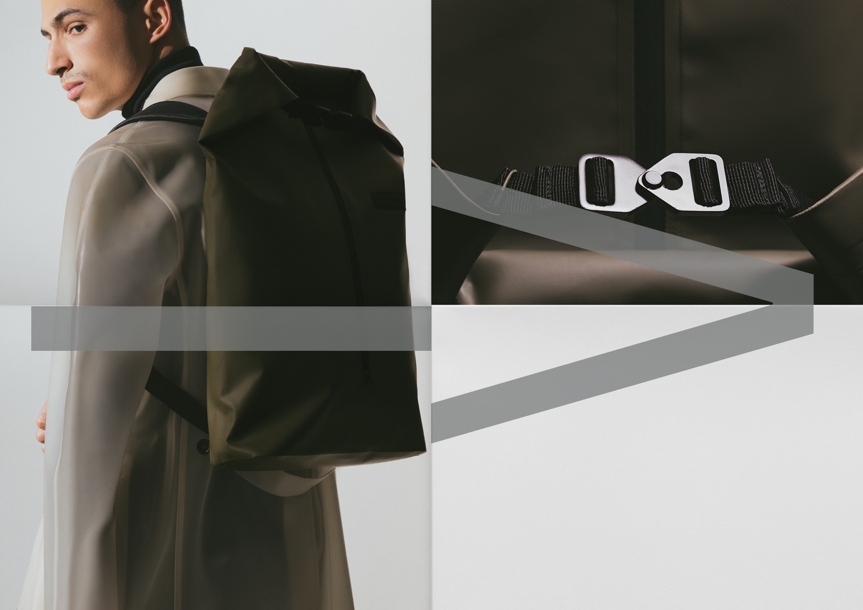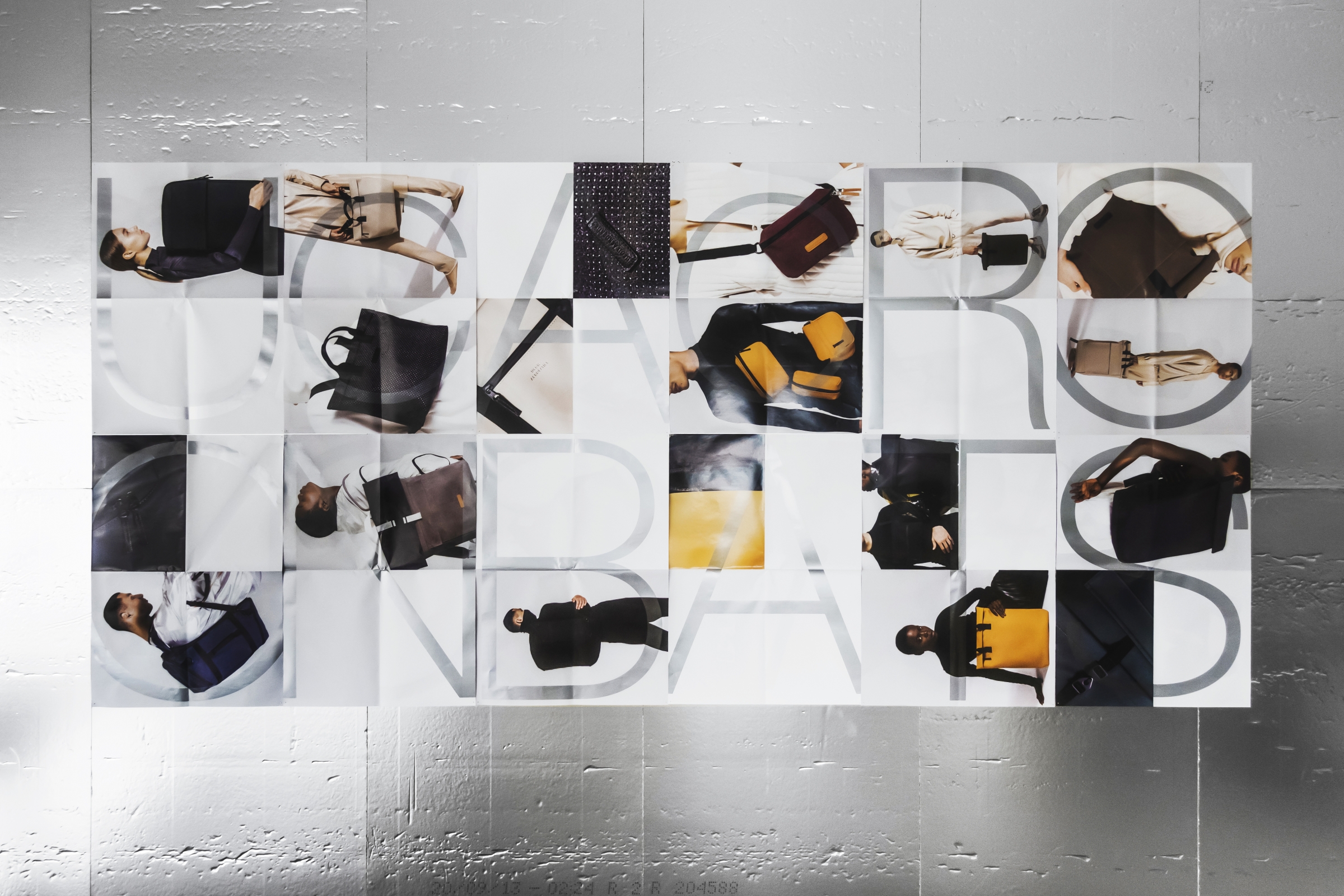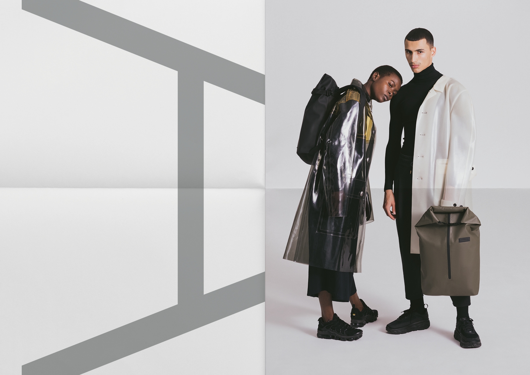 Art Direction, Photography, Editorial DesignBerlin brand Ucon Acrobatics creates goods designed to enable urban journeys and exploration: bags and backpacks made from innovative materials, often featuring an additional functional aspect. For their 2019 Autumn/Winter lookbook we chose a bold newspaper format contrasted by a glossy, heavier paper. Big silver letters stating the brand’s name become autonomous graphic structures that superimpose the subdued campaign’s pictures taken by Lukas von Monkiewitsch. Each letter treats each print sheet like a poster. With the final fold, the letters clash and converge so that they create new abstract glyphs that run over the folds and emphasize Ucon Acrobatics’ background such as urban visual communication codes and modern flexibility.