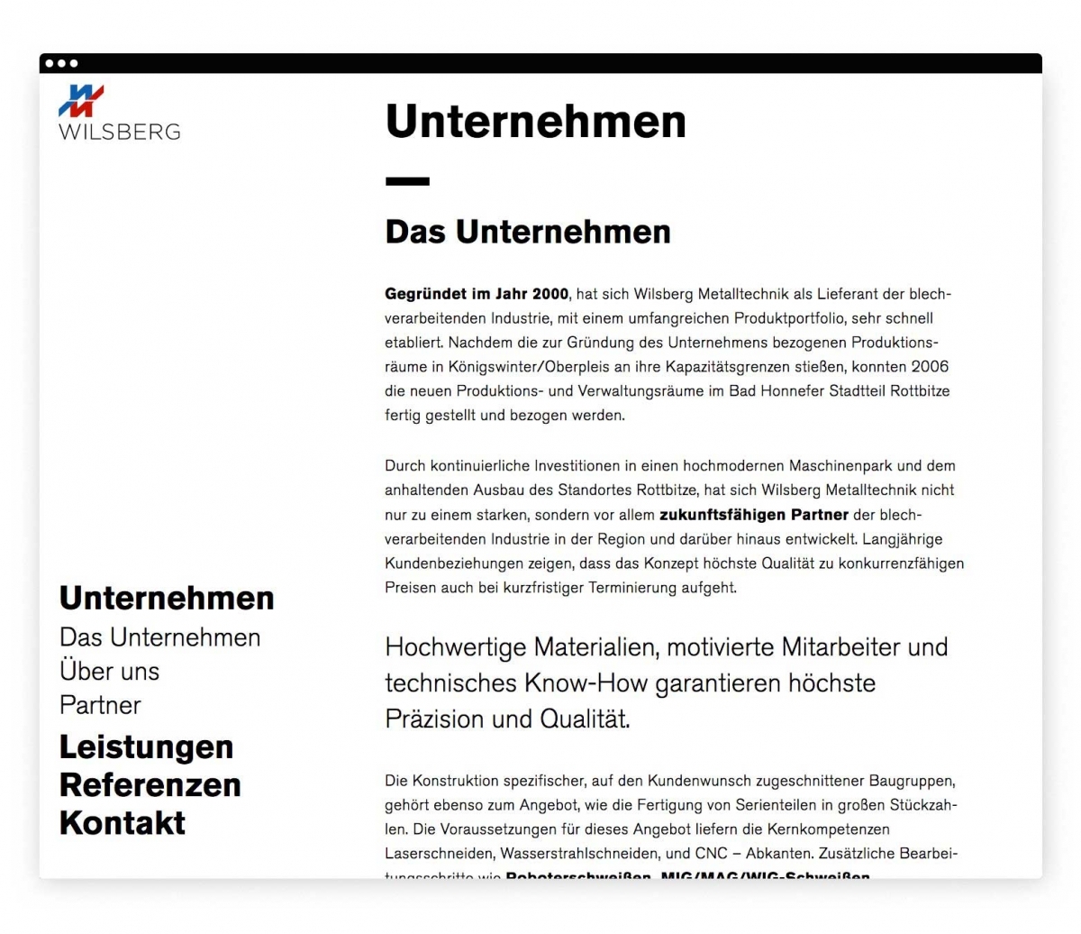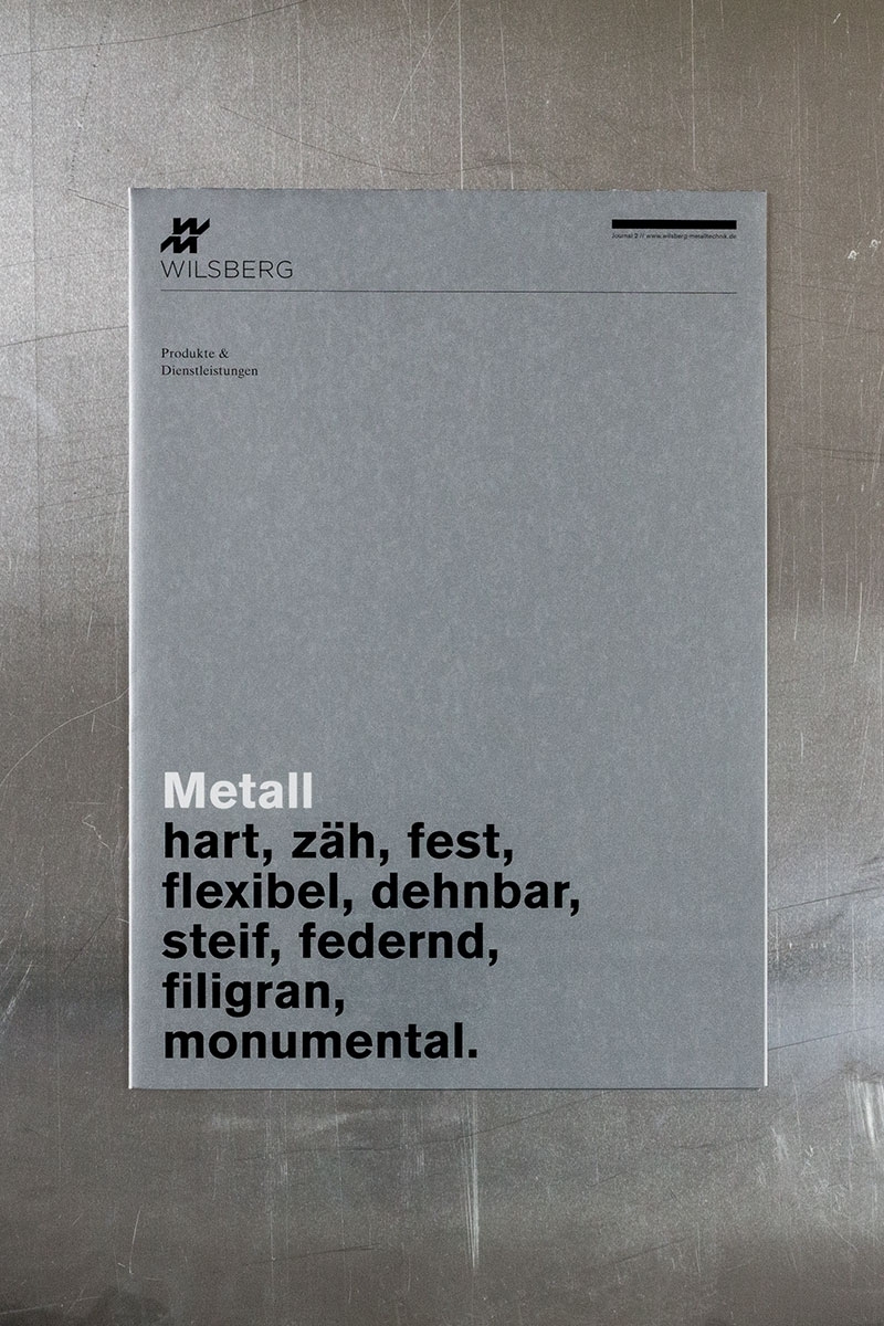 Art Direction, Editorial Design, Webdesign, Web Development, PhotographySeit 2012 begleitet Studio von Monkiewitsch das Unternehmen Wilsberg Metalltechnik in jeglicher gestalterischer und kommunikativer Hinsicht. Von Printmedien über Webdesign und Fotografie wurde eine klare, dem Unternehmen individuell zustehende, visuelle Sprache gegeben.